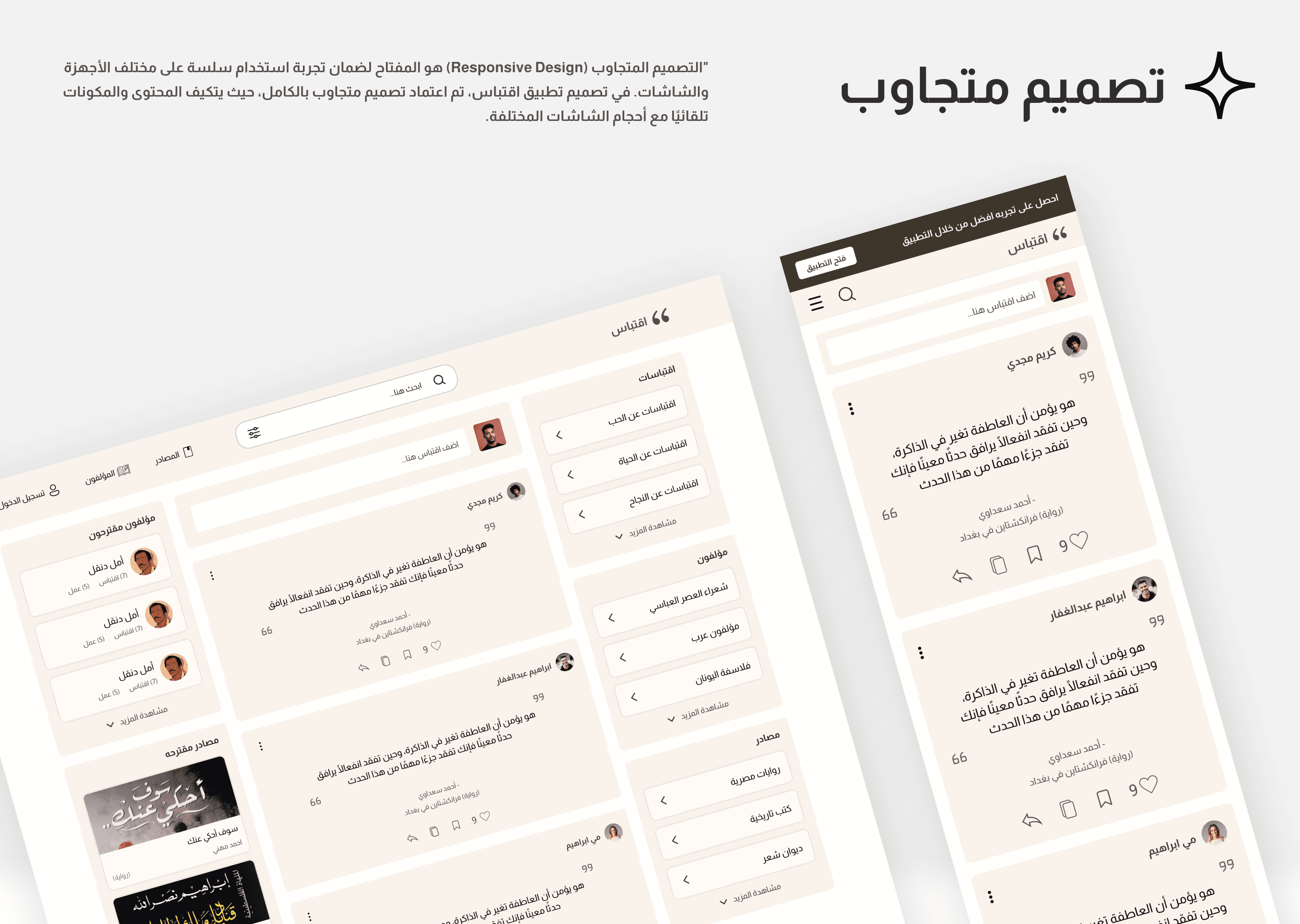 The challenge was to design a distraction-free interface that respects Arabic content and makes reading, saving, and sharing quotes effortless.