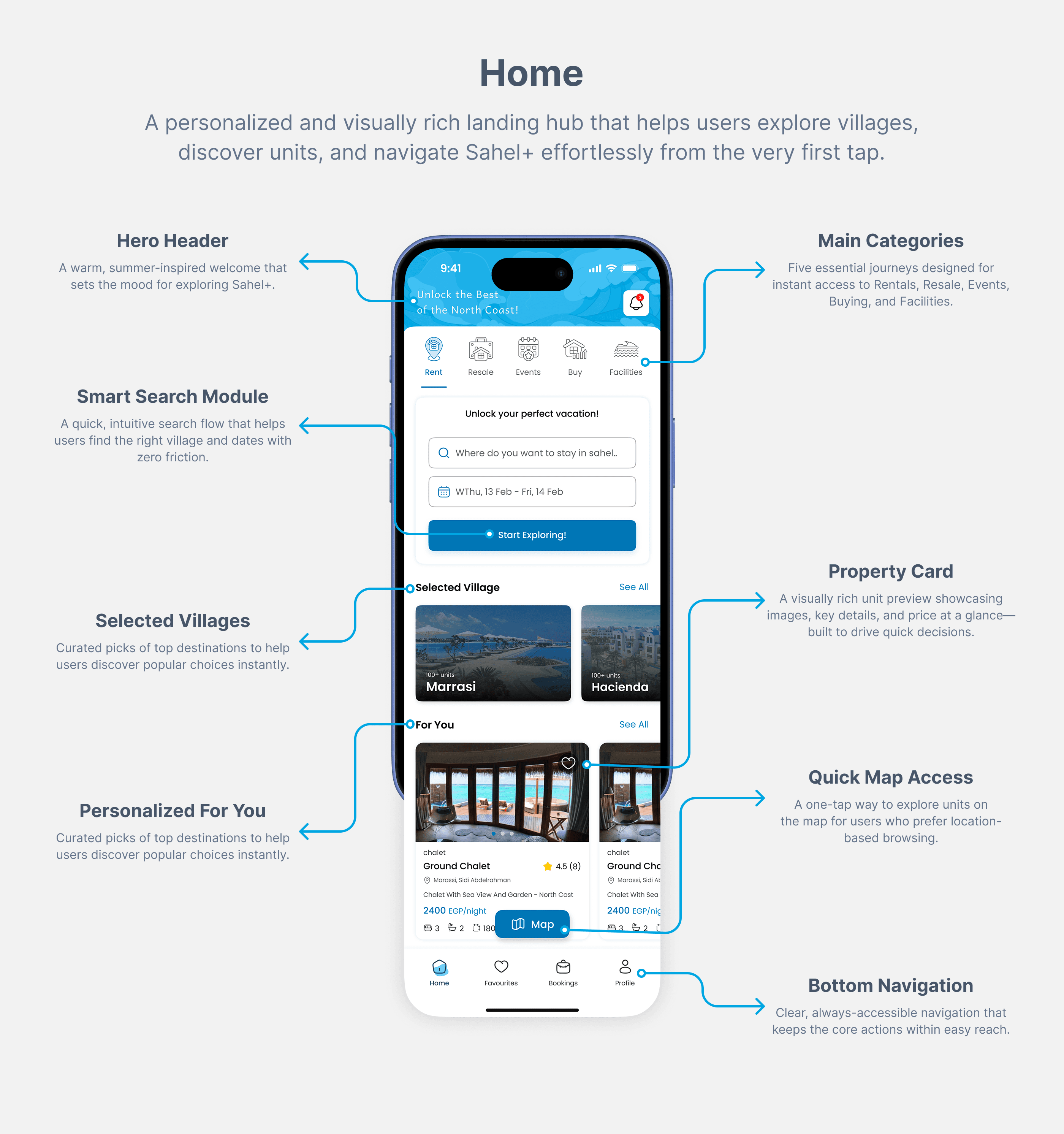 Sahel+ is a mobile platform that connects renters, property owners, and service providers across Egypt’s North Coast, making rentals, resales, and lifestyle experiences easy to discover and book.